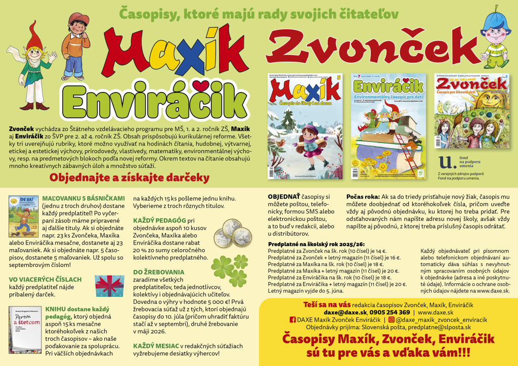 Časopis Maxík je obľúbený časopis pre školákov. Vychádza z učebných osnov pre I. stupeň ZŠ. Čitatelia v ňom nájdu príbehy na pokračovanie, básničky, hádanky, zaujímavé články a rubriky , mnoho kreatívnych zábavných úloh, doplňovačku, vyfarbovačky, vystrihovačku na kartónovom papieri, veľa súťaží o zaujímavé odmeny. V niektorých číslach pribalený darček!